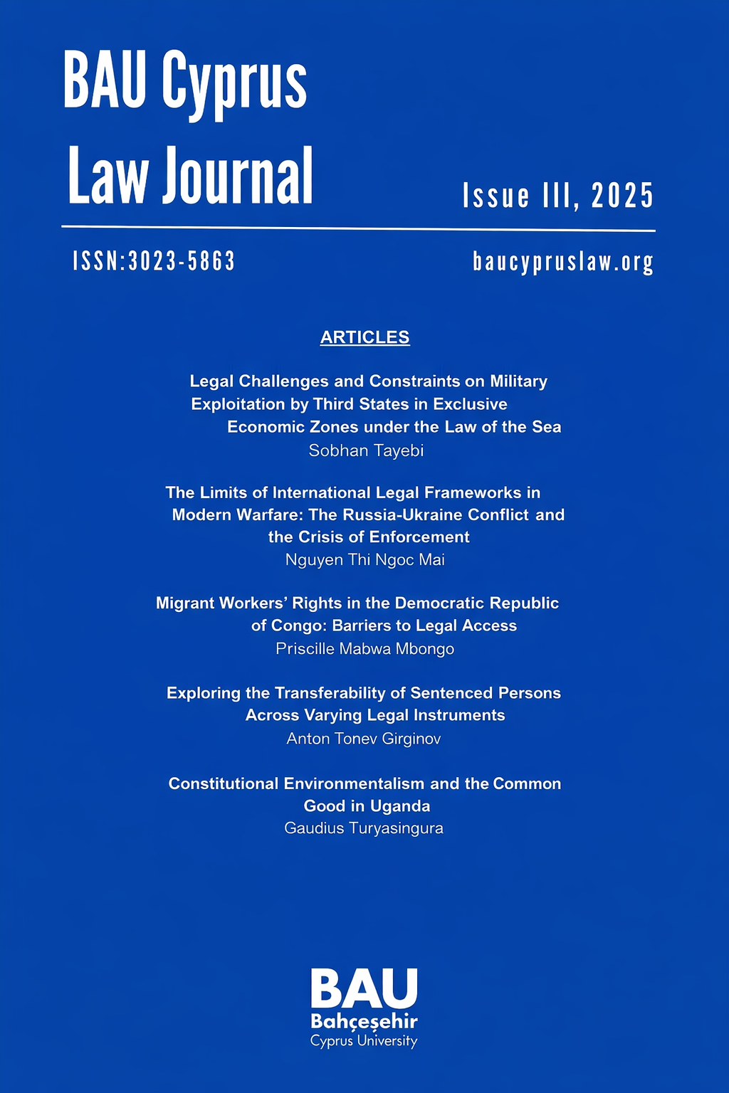 The BAU Cyprus Law Journal is a peer-reviewed, open-access academic journal dedicated to advancing legal scholarship and critical analysis in the fields of national, regional, and international law. Built on a strong ethical foundation, the journal adheres to globally recognized standards of integrity, transparency, and fairness. All contributors, including authors, editors, and reviewers, commit to upholding these principles throughout the publication process.
